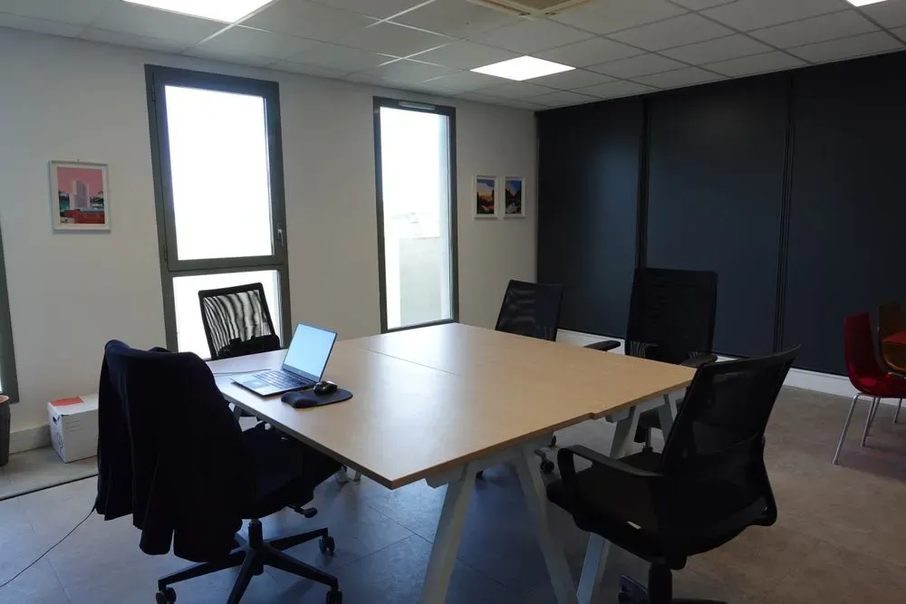 Location bureau Surface 15.28m² Tarif mensuel HT 590€ • Engagement 3 mois minimum sous contrat • Accès 24h/7j • Meublé (table, chaise, caisson) ou vide selon demande • Clim réversible • Charges incluses (électricité, eau, assurance, taxe foncière)